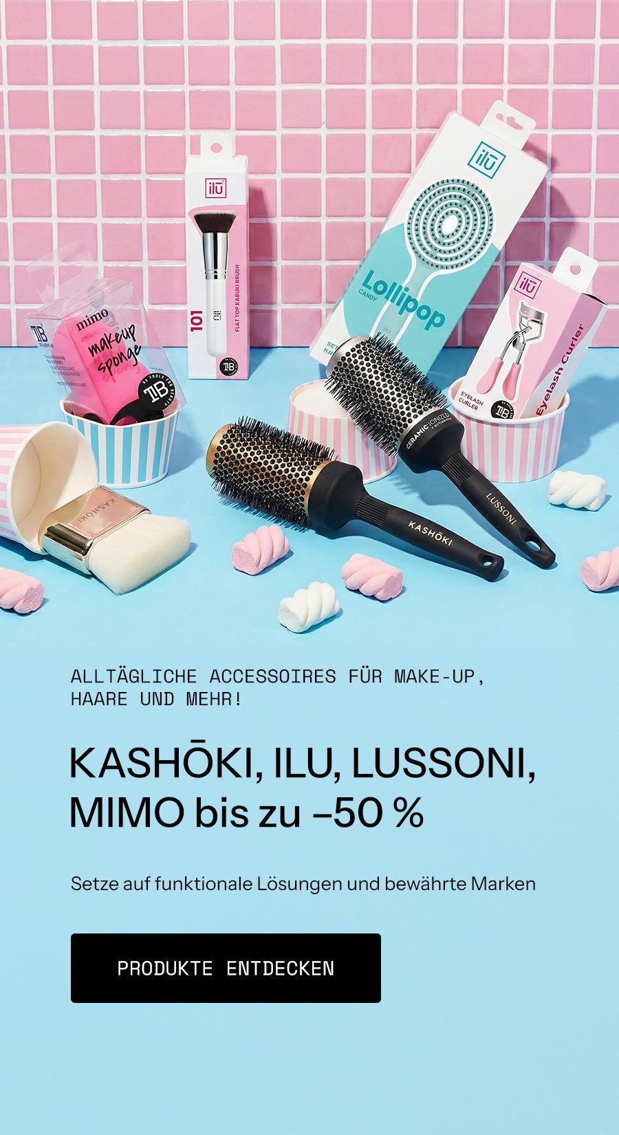 Das Sortiment besteht nicht nur aus Pflegeprodukten, sondern auch aus Produkten von Tools for Beauty - Hersteller von professionellem Zubehör für Make UP Haare und Nägel von höchster Qualität. Das Tools for Beauty Sortiment besteht aus vier Marken - marki – ilū, LUSSONI, Kashōki, und MIMO. Bei den Zubehören von ilu dreht sich alles um Schönheit Haarbürste, und Pinsel, die dem Pflegebedaf gerecht werden. Ilu-Bürsten aus der BambooM-Linie sind aus Bambus und die zarten, antistastatischen Borsten beschädigen die Haare nicht. Die Ilu Bürsten, Kämme zeichnen sich durch wunderschöne, pastellige Farben aus, die jeden Farbliebhaben begeistern werden. Sie zeichnen sich auch durch minimalistische Form und außergewöhnliche Langlebigkeit aus. Schauen Sie sich heute an, welche der ilu-Bürsten die beste für Ihr Haar ist!Die Marke Kashoki besteht aus veredelten Kosmetik- Zubehören. Die Kombinations aus anspruchsvollem Stil und höchster Qualität macht die Kashoki Accessoires zum Vergnügen für alle. Die Marke bietet eine umfassende Auswahl an Nagelfeilen, Make Up Schwämme, Bürsten und Kämme, deren Funktionen auf jeden Pflegeverfahren abgestimmt sind. Unter den Produkten von Kashoki finden Sie Bürsten zum Stylen und Kämmen.Es gibt auch andere Zubehöre dieser Marke – wenn Sie nach der perfekten Wimpernzange suchen, um geschwungene Wimpern zu machen, probieren Sie die Kashoki- Wimpernzanhe aus und genießen Sie jeden Tag mit einem schönen Look. Die Marke Lussoni ist in Zusammenabreit mit professionellen Hairstyliste entworfen worden. Lussoni bietet ein breite Palette an professionellem Friseurzubehör, die auf die Bedürfnisse von Friseuren abgestimmt ist. Zu den Produkten von Lussoni gehören unter anderem Schminkpinsel, Bürsten und Kämme, Klammer und Stecknadel, donut, und Friseurumhänge, Friseurhandtücher und alle Zubehöre, die Sie zum Färben Ihrer Haare brauchen. Die Marke Lussoni erfüllt die Bedürfnisse professioneller Friseure, die nach den besten Zubehöre für ihren Friseursalon suchen.Im MIMO-Angebot finden Sie Bürsten, Make Up Schämme und vieles mehr Nägel Geräte. Diese Produkte zeichnen sich durch hohe Qualität und attraktive Preise aus. Das einzigartige Design und die Feinheiten machen die Anwendung dieser Produkte leicht in der Bedienung. Tools for Beauty ist auf die Bedürfnisse von allen anspruchsvollsten Kunden zugeschnitten.