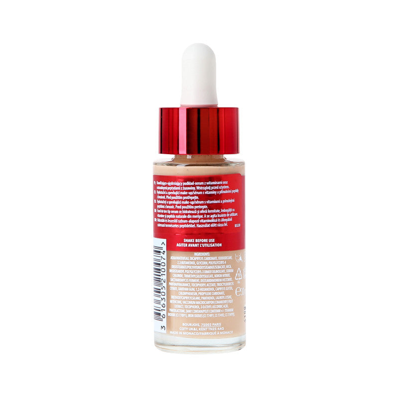 BOURJOIS Healthy Mix Serum is an innovative foundation that combines the care properties of a serum with the coverage effect of a foundation. Thanks to its light, silky consistency, it provides a natural finish and comfort of wear throughout the day. The formula enriched with vitamins C, E and B5 and cranberry extract supports skin hydration, improves its elasticity and gives a healthy glow. After 6 hours from application, the skin's hydration level increases by 50%.