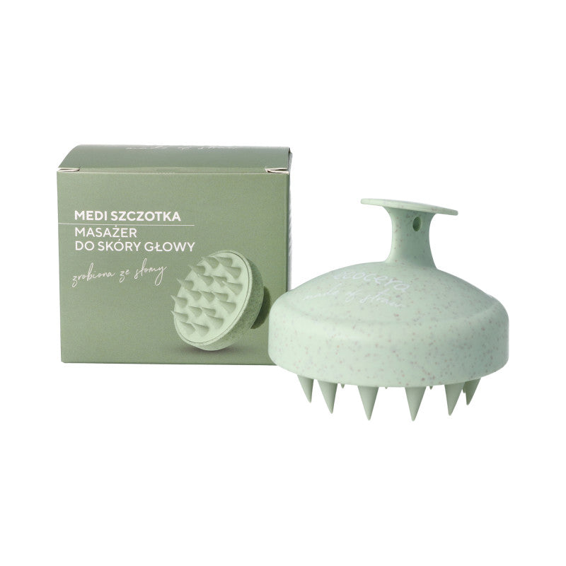 massager brush with soft silicone tips gently massages and stimulates the scalp during the application of Ecocera MEDI HAIR BOOSTER lotion. It stimulates microcirculation and makes the hair bulbs more supplied with blood, which directly improves their condition. The hair becomes healthier, stronger and lifted at the roots. The brush allows you to effectively combine care with a moment of relaxation.