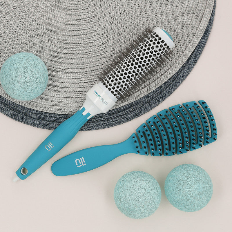 ilū 2 Pc Set Turquoise Detangling Hairbrush and Round Styling Hairbrush