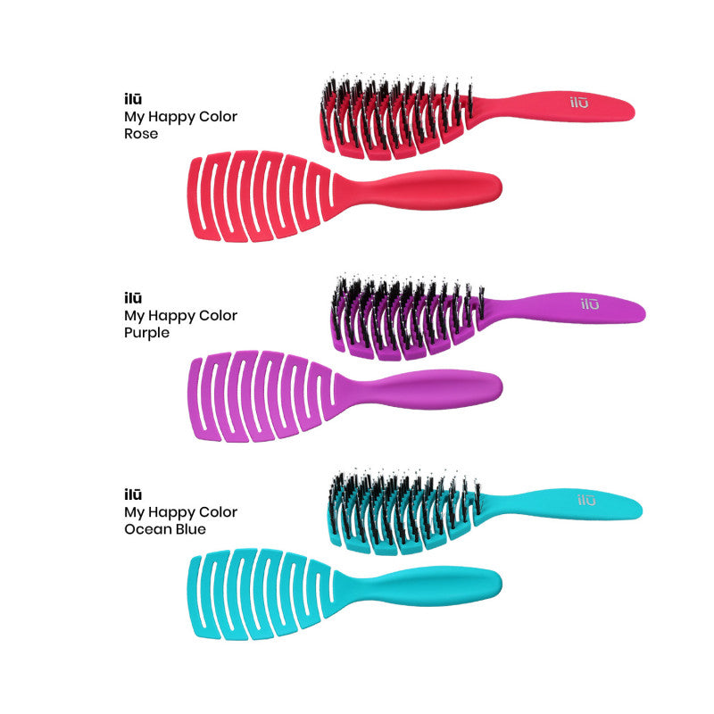 Ilū My Happy Colour hairbrush set is a perfect combination of the best materials, extraordinary design and technology. They are great for combing dry and wet hair and also massaging the scalp, improving blood circulation. Their small size will fit into your purse to take care of your beautiful hair needs everywhere you go. The hairbrushes have two types of bristles that not only comb and smooth every hair strands to make the hair look spectacular.