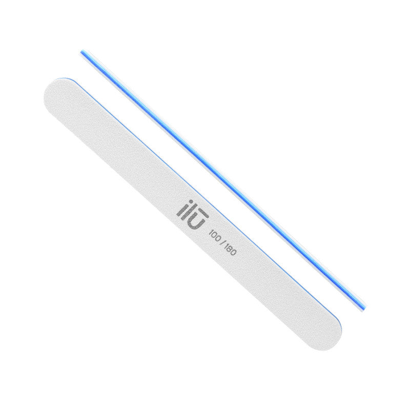 Double-sided medium grit nail file, with 180 fine grit side and 100 medium grit side. The straight shape of the file is commonly used due to its multifunctionality. Used for both natural and extended nails. File a layer of gel or acrylic and model the nail into a specific shape. Ideal for everyday nail care.