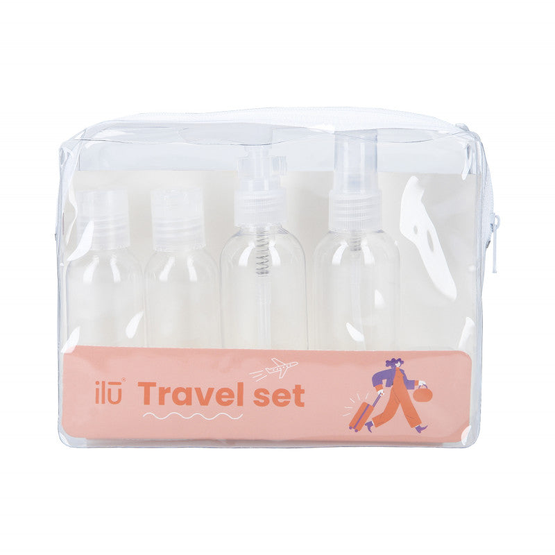 Do you want to have your favorite cosmetics always with you? With the ilū travel set you can pour your shampoo, shower gel, hair conditioner or body lotion into the bottles and mark them with the stickers provided for easier identification. From now on, any journey will be much more enjoyable with a set of your favorite cosmetics.
