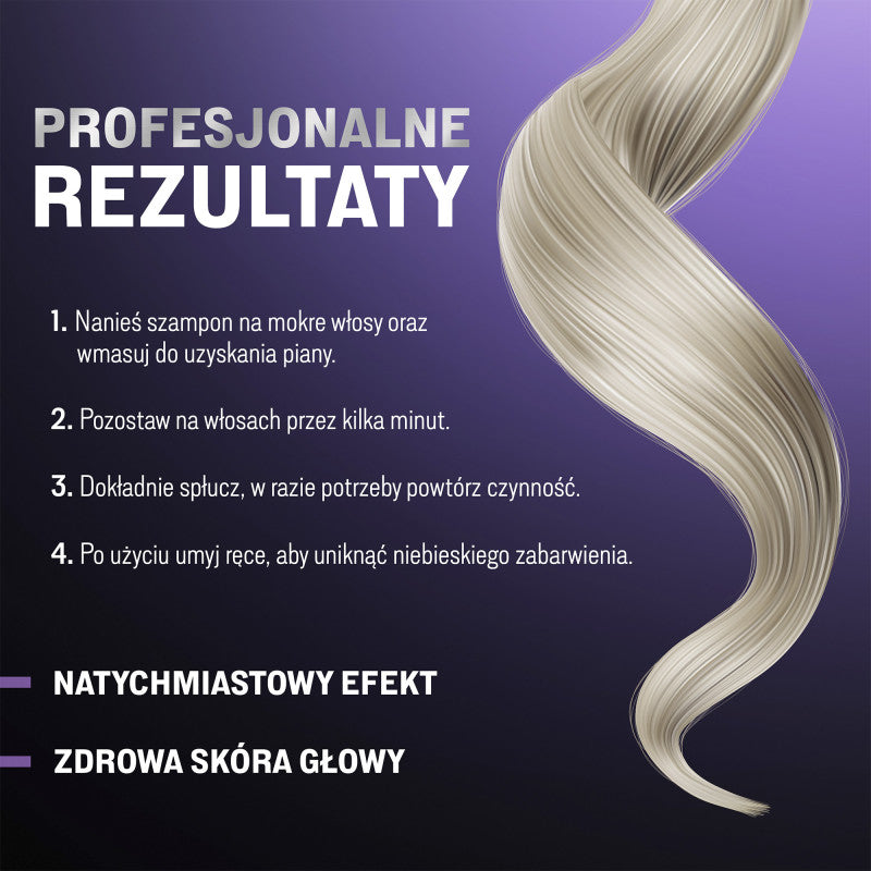 The Shampoo neutralizes unwanted, yellowish hue of blond hair. Effective hair care is provided thanks to the content of nourishing ingredients. The shampoo has a beautiful black currant scent. The formula contains micro-proteins that protect hair, soften it and provide natural shine.