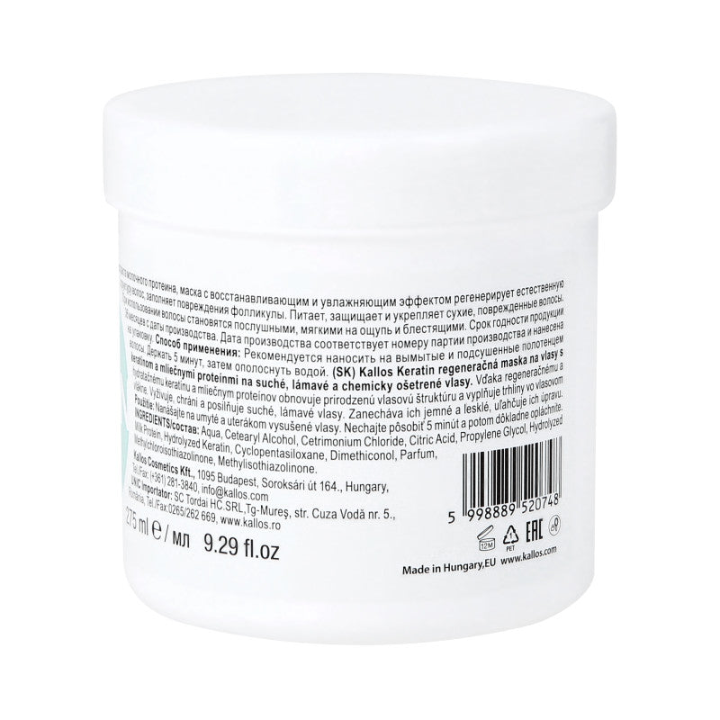 The keratin and milk proteins contained in the formula restore hair’s natural structure and rebuild damages. The mask nourishes and protects dry and brittle hair fibres. In effect hair becomes soft to touch, shiny and manageable.