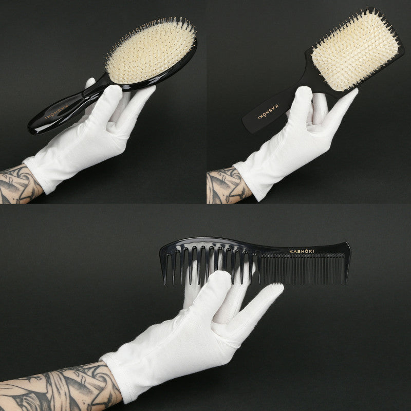❤️ Detangling Brushes - Kashōki Smooth White Detangler brushes are made with natural boar bristles that provide shine and smoothness during brushing. High-quality nylon ballpoint tips separate strands of hair and massage the scalp.