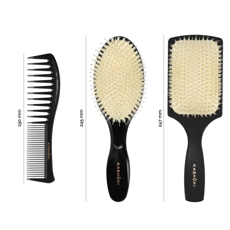 Kashōki HASU Hair Styling Set: 1 x Detangling Brush, 1 x Round brush, 1 x Comb