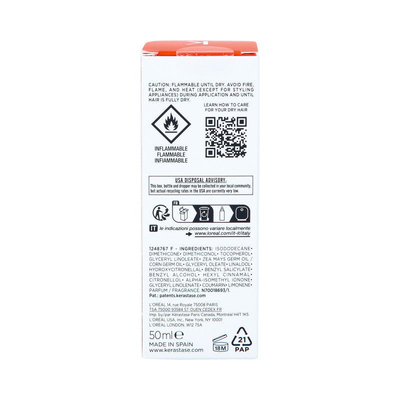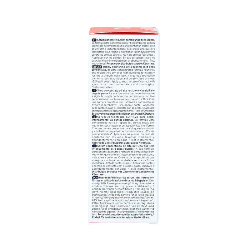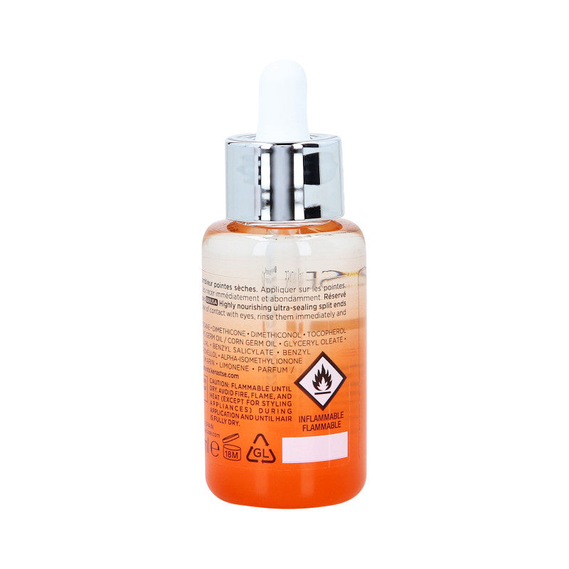 Nutri-Supplement Split Ends Serum by Kérastase is a highly nourishing and smoothing serum for dry hair with split ends. This leave-in serum, enriched with polymers and lipids, has been developed to improve the appearance of dry and split ends. Split Ends Serum is a nourishing concentrate specially formulated to care for dry hair with split ends. It consists of anti-drying polymers that seal dry ends and prevent the appearance of split ends. It contains nicotinamide, a derivative of vitamin B3 that strengthens hair, and plant proteins that deliver essential nutrients while maintaining moisture. This vitamin-rich blend of oils ensures 2x fewer split ends, giving hair 99% more strength and 81% more shine. In addition, Nutri Split Ends Serum creates a barrier around the hair shaft to lock in all the nourishing goodness and protect it from drying out, which creates a healthy environment for longer hair growth.