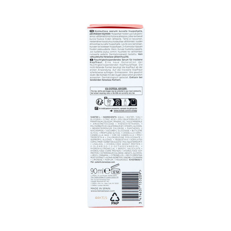 KERASTASE NUTRITIVE SCALP SERUM is a luxurious serum that instantly moisturizes dry scalp, bringing relief and comfort. Vitamin complex: Supports the nourishment of the scalp, providing it with essential nutrients. Vegetable proteins: Strengthens the hair structure, improving its elasticity and healthy appearance. Niacinamide : Anti-inflammatory and regenerative, supporting the skin's repair processes.