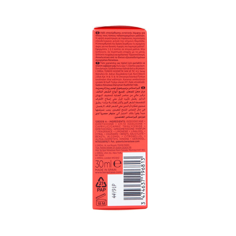 The ultimate solution for hair in need of radiant strengthening and repair. This luxurious hair oil is carefully formulated to envelop each strand, providing intense nourishment and hydration while imparting a lustrous, luminous shine. Enriched with a powerful blend of repairing ingredients such as citric acid and glycine, it works to repair damage, strengthen hair fibers and protect against future breakage. It radically neutralizes stubborn dullness caused by damage, for 4x shinier hair. Hair is 99% stronger and the oil visibly helps reduce split ends.