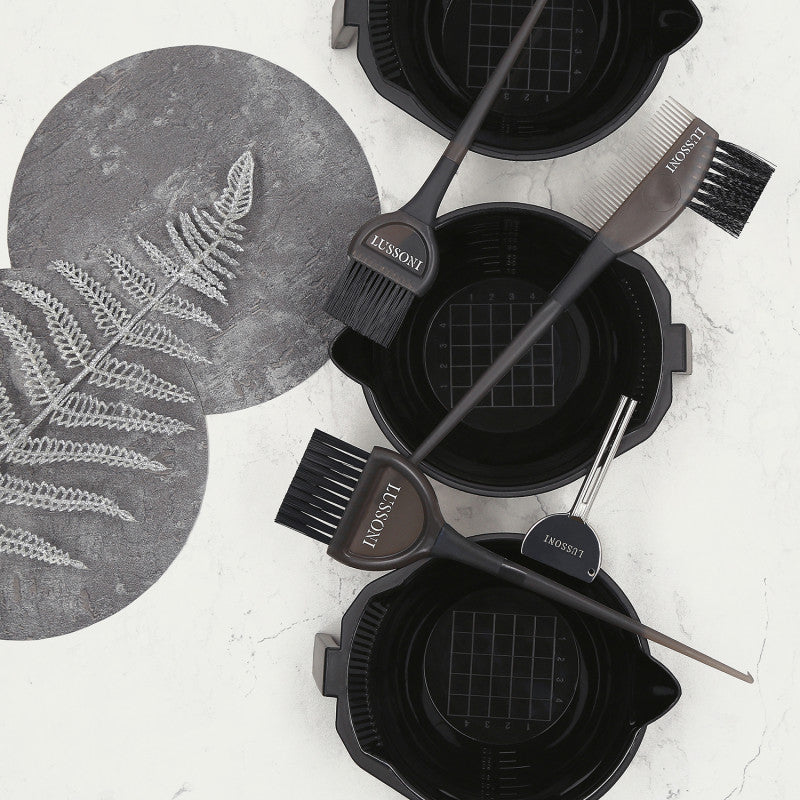 - Lussoni Double Sided Tinting Brush TB 033 – A double-sided brush for applying paint with a comb and a handle tipped with a skewer.