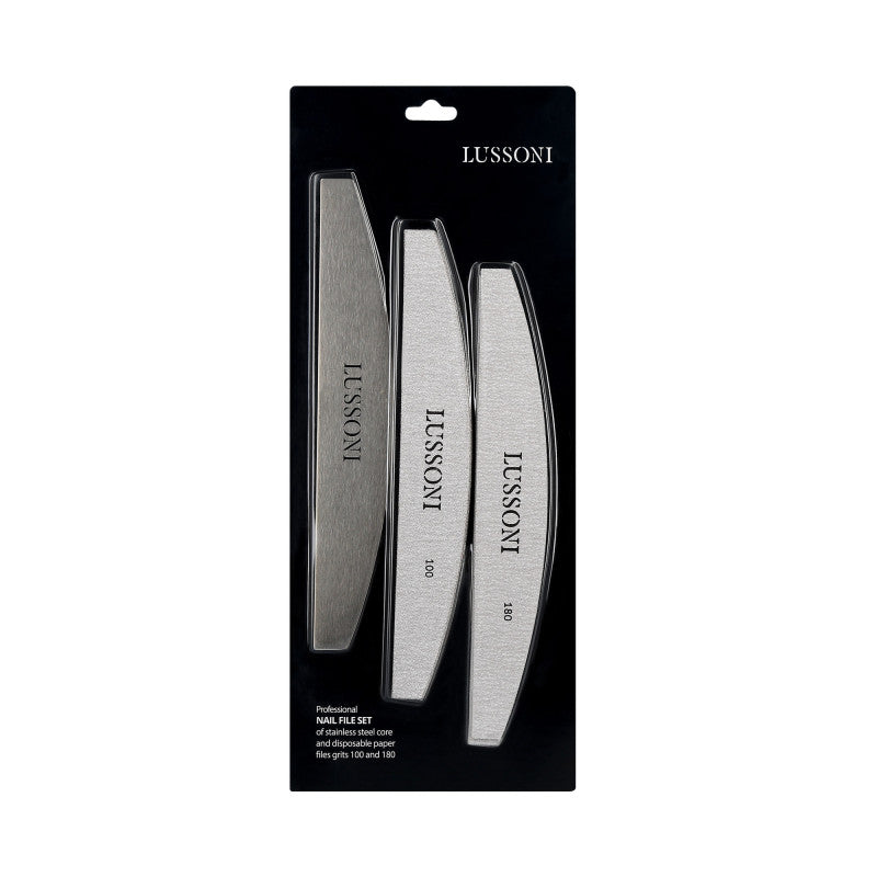 The Lussoni nail file has a steel base for sticking paper nail files and it comes with 5 disposable, self-adhesive files with a 100 grit and 5 files with a 180 grit. The Lussoni nail file is durable and can be used for a long time. Provides hygiene during manicure. It is used to model the shape of nails and makes it easier to saw in hard-to-reach places