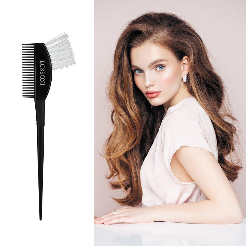 The double-sided colouring brush can be used in any hairdressing salon. The LUSSONI TB 030 has durable, well-shaped nylon bristles on one side and a handy comb on the other. Helps to apply hair dye quickly and evenly. Handle ended with a tip makes it easier to divide hair into sections.