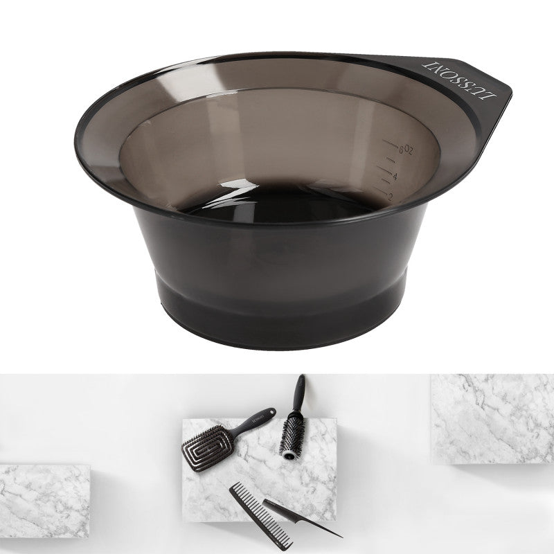 The LUSSONI tinting bowl with measurement markings is made of high quality material. Practical grip on the side and non-slip base facilitate hair colorist’s everyday work. Measuring scale on the bottom and on the side will help to accurately measure just the right amount of coloring products.