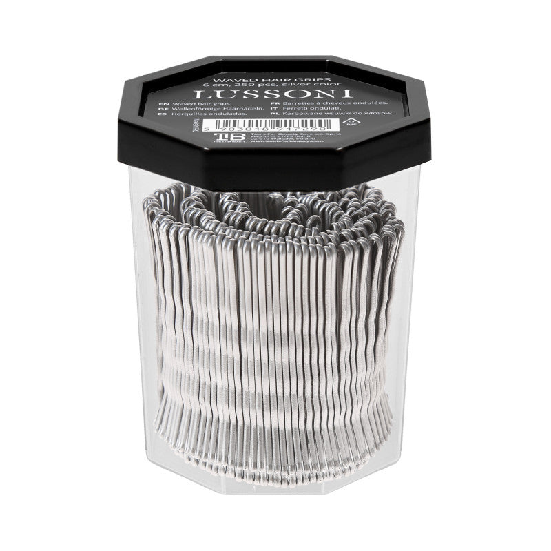 LUSSONI Waved Hair Grips, 4 cm, Silver, 250 pcs.