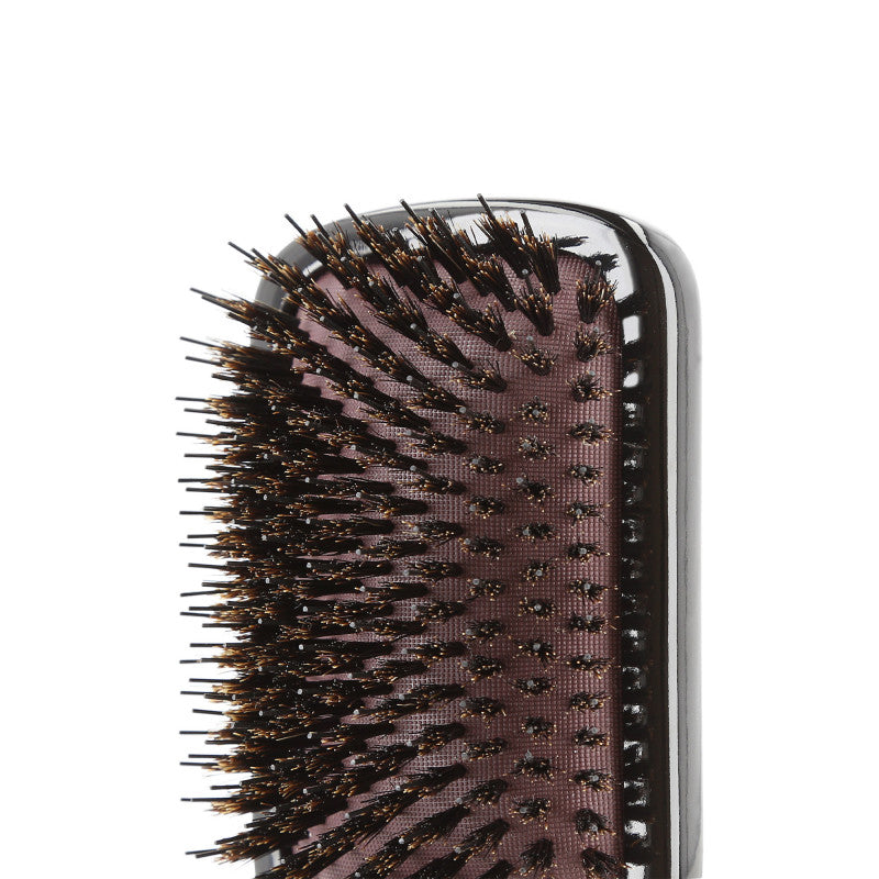 Wood has beneficial effect on hair - it prevents static and smooths strands of hair. The Natural Style wooden brush is made of beechwood and is equipped with two types of bristles: natural boar and nylon. Natural boar bristles are made of keratin and as a result, they close hair cuticles during brushing, providing smoothness and healthy looking shine. High quality nylon pins with anti-static properties separate and detangle hair thoroughly.