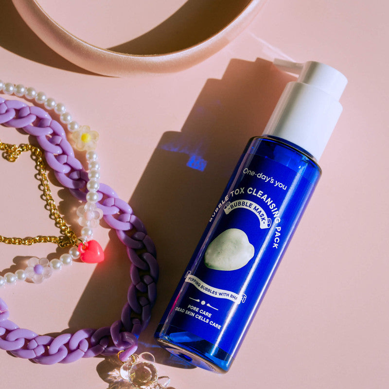 ONE-DAY'S YOU Bubble Tox Cleansing Pack is an innovative bubble mask that cleanses pores, removes excess sebum and smooths the skin in just a few minutes. Thanks to the content of BHA and the patented Blue Complex HR complex, it effectively exfoliates dead skin, improves skin texture and reduces imperfections. Once applied to the skin, the mask begins to fizz, creating microbubbles that gently lift impurities from pores, leaving the skin clean and refreshed. The formula has been enriched with 17 natural ingredients that soothe, moisturize and protect the skin from external factors.
