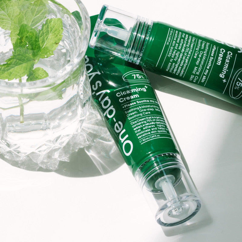 ONE-DAY'S YOU Cica:ming Cream is a light but intensively moisturising and soothing cream, specially developed for sensitive and irritated skin. Contains 73% of Centella Asiatica extract , which effectively soothes redness, regenerates and supports the reconstruction of the skin's protective barrier. Thanks to its unique, gel consistency, the cream is easy to spread, absorbs quickly and does not leave a greasy film. The patented CENTEL QUA™ and BLUE COMPLEX HR complex additionally moisturises, soothes and strengthens the skin, protecting it from harmful external factors.