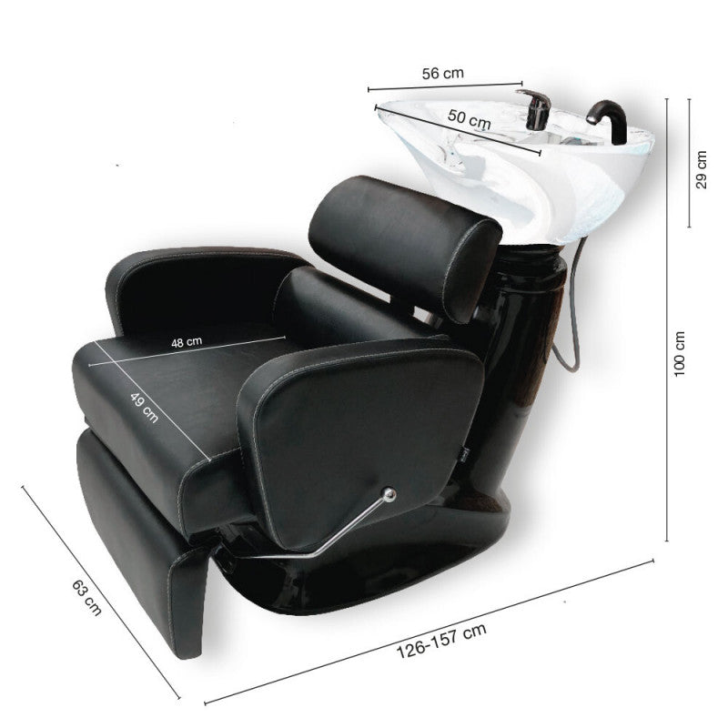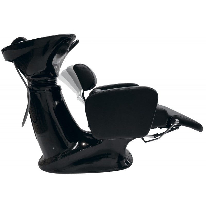 Flex washbasin is compact and ideal for rooms of many sizes. The flexible Sakai Re - Flex backrest guarantees your client the best possible sitting position! A mechanically lifted footrest increases the client's comfort during the procedure. There is a choice of a ceramic washbasin in black or white. The upholstery is made of arelan , which is very durable to use and clean. The product is available with a traditional faucet and an anti -drop shower system. The water parts are certified by the EU.