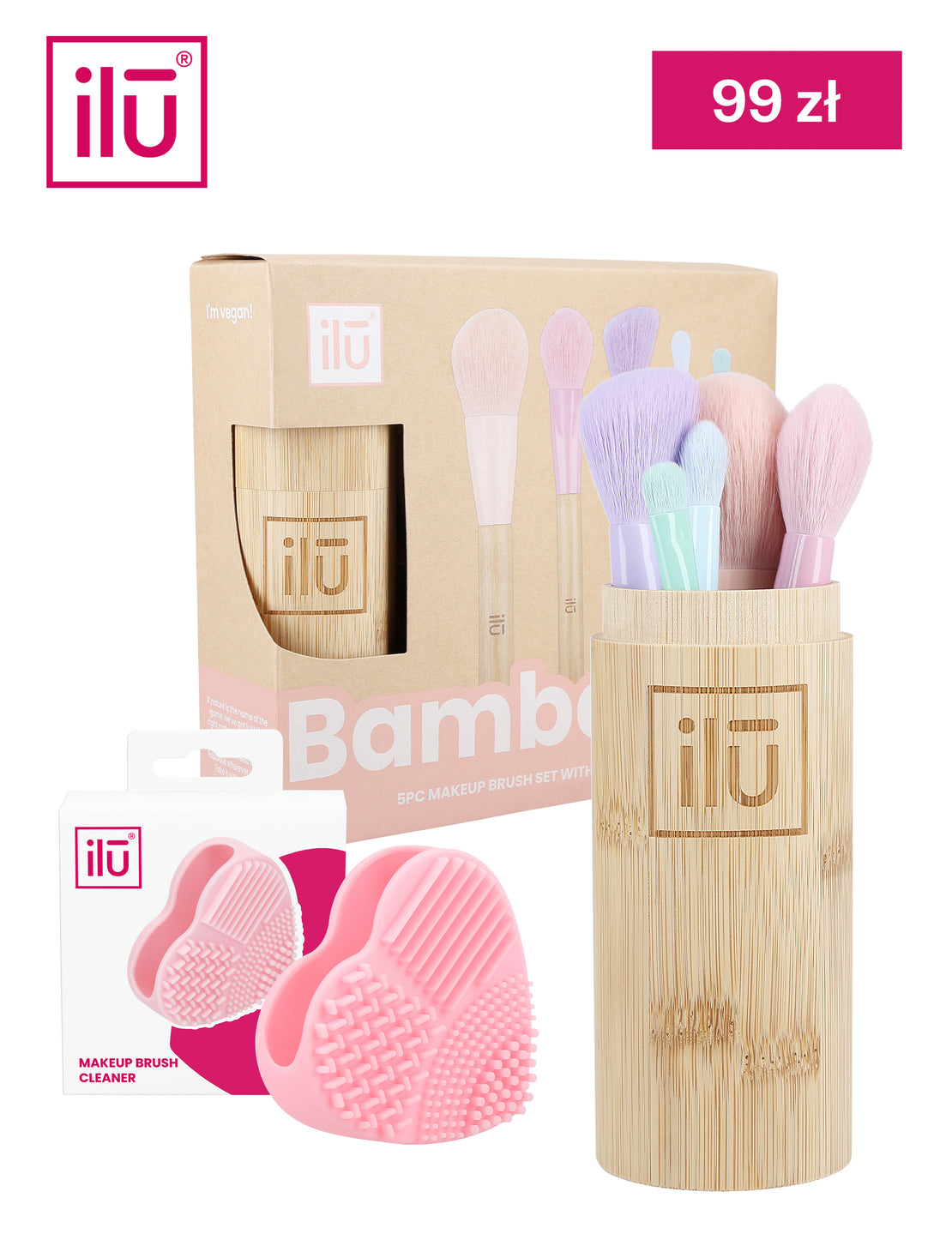 Zestaw ilū to kompaktowa, pięcioczęściowa kolekcja pędzli zamknięta w eleganckiej, bambusowej tubie, która idealnie sprawdzi się zarówno w domu, jak i w podróży.