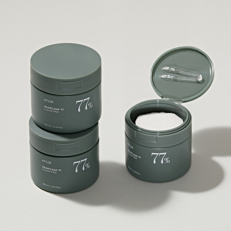 ANUA Heartleaf 77% Toner Pad to innowacyjne płatki nasączone esencją zawierającą 77% ekstraktu z liści sercownika (Houttuynia Cordata), znanego z właściwości kojących i przeciwzapalnych. Produkt został stworzony z myślą o codziennej pielęgnacji skóry problematycznej, wrażliwej oraz skłonnej do nadmiernego wydzielania sebum. Dwustronna struktura płatków umożliwia delikatne złuszczanie martwego naskórka oraz tonizowanie skóry, pozostawiając ją odświeżoną i zrównoważoną.