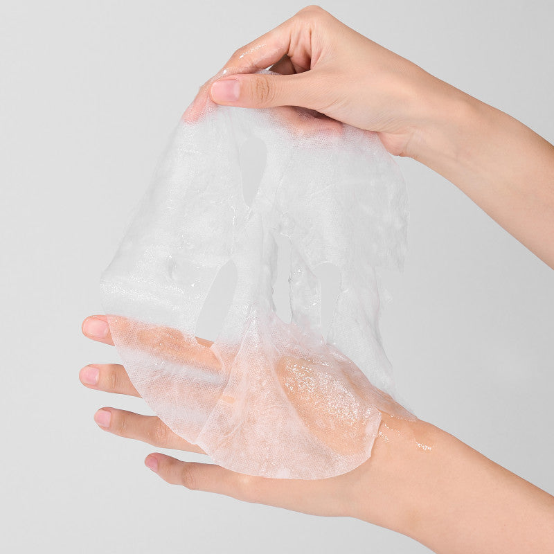 Płachty wykonane są z połączenia włókien tencel i cupro - bardzo chłonnej mikrofibry, która idealnie dopasowuje się do konturów twarzy. Dzięki temu esencja jest równomiernie rozprowadzana i skutecznie zatrzymywana na skórze. Tencel zapewnia miękkość i przewiewność, a cupro wspiera utrzymanie wilgoci, co pozwala skórze w pełni korzystać z dobroczynnych składników aktywnych. Maskę można traktować jak drugą skórę – przylega, nie spływa i dostarcza esencję tam, gdzie skóra jej najbardziej potrzebuje.