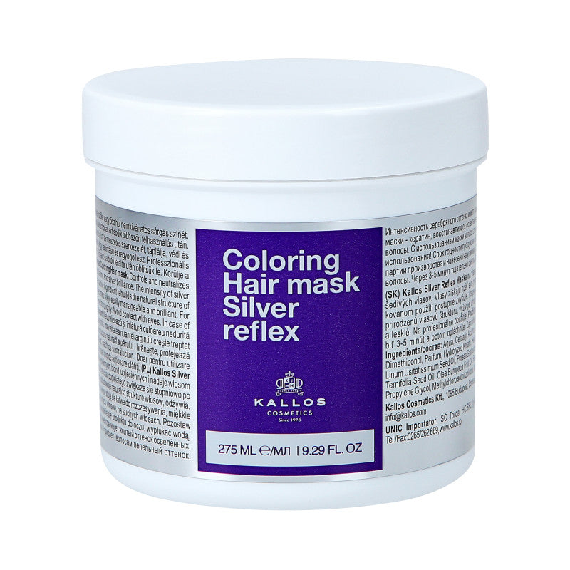 Maska Kallos Silver Reflex jest przeznaczona do pielęgnacji włosów blond i siwych. Dzięki zawartości fioletowych pigmentów pomaga ochłodzić kolor włosów. Może być stosowana zarówno do włosów naturalnych, jak i farbowanych lub rozjaśnianych.