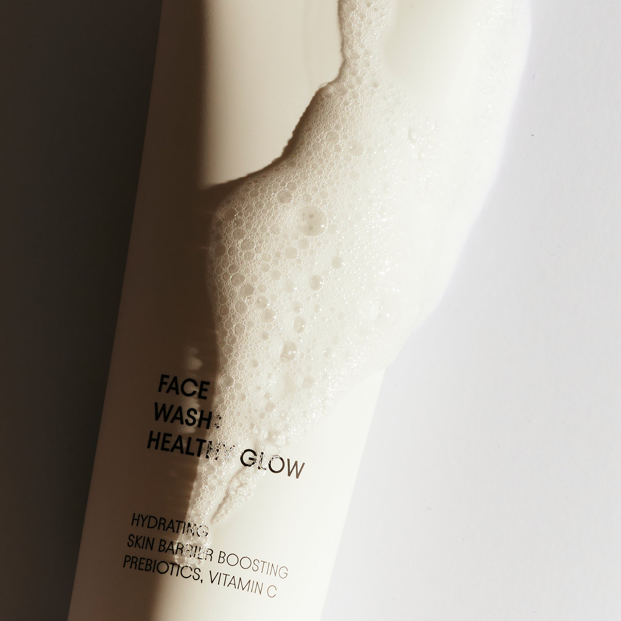 Healthy Glow LYNVЁ Sanfte Gesichtsreinigung entfernt gründlich Unreinheiten und pflegt gleichzeitig die Hydrolipidbarriere der Haut, um eine optimale Feuchtigkeitsversorgung zu gewährleisten. Die Formel, angereichert mit Antioxidantien, Präbiotika zur Unterstützung des Mikrobioms und Mineralien, die die Zellatmung anregen, verleiht der Haut neue Frische und verbessert ihren Gesamtzustand. Das Ergebnis ist ein reiner, mit Feuchtigkeit versorgter und strahlender Teint.