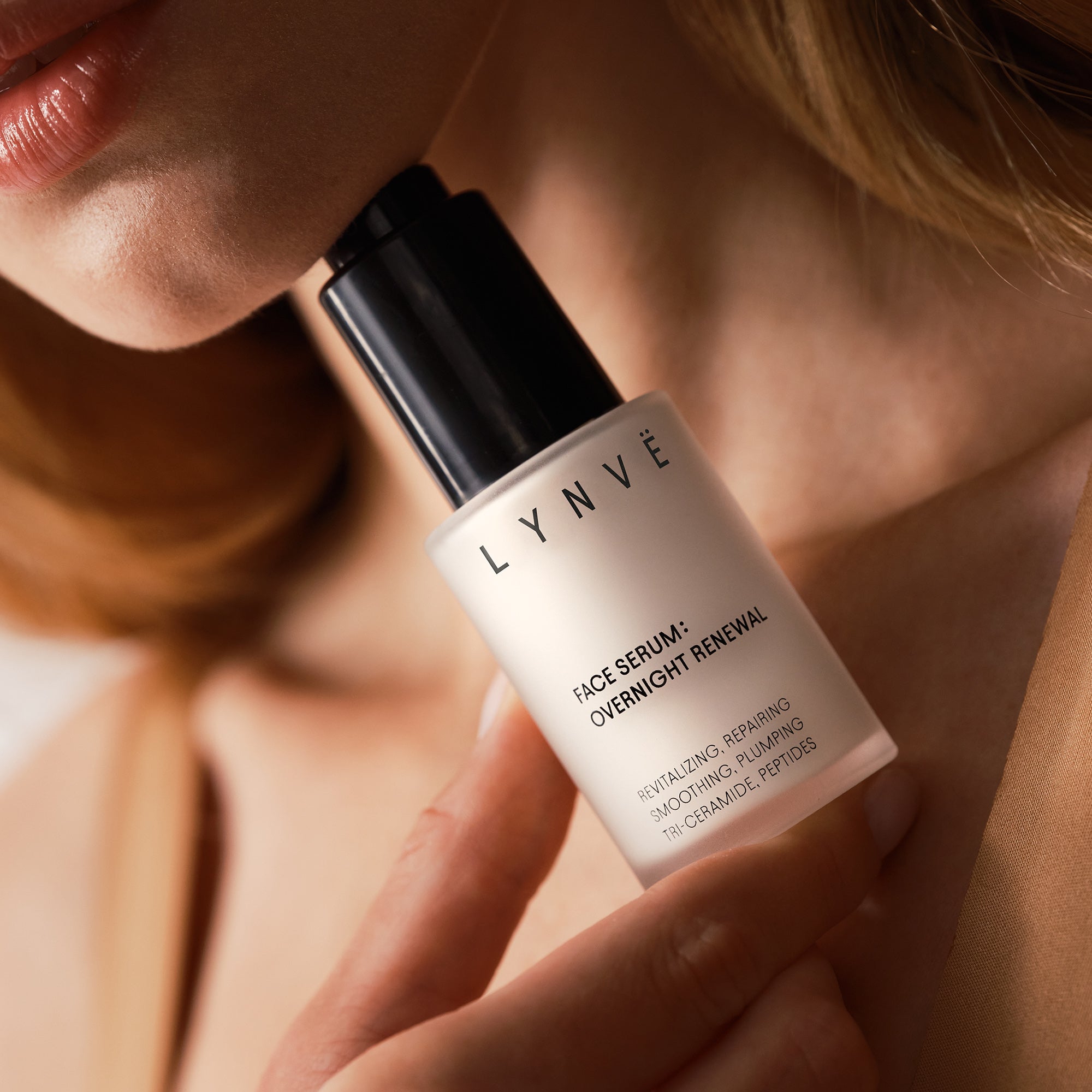 Das konzentrierte LYNVЁ Overnight Renewal Nachtserum umhüllt das Gesicht mit einer Schicht regenerierender Ceramide, Peptide und Antioxidantien. Während Sie schlafen, unterstützen die Wirkstoffe den Wiederaufbau der Hydrolipidbarriere, stimulieren die Kollagensynthese und verbessern Hautstruktur und Elastizität. Das Serum gleicht den Hautton aus und reduziert Poren und feine Fältchen.