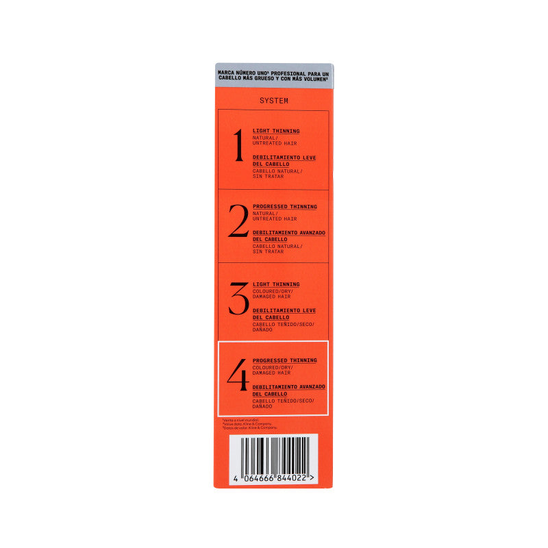 • Kompletny, 3-stopniowy system do włosów farbowanych z postępującym przerzedzeniem