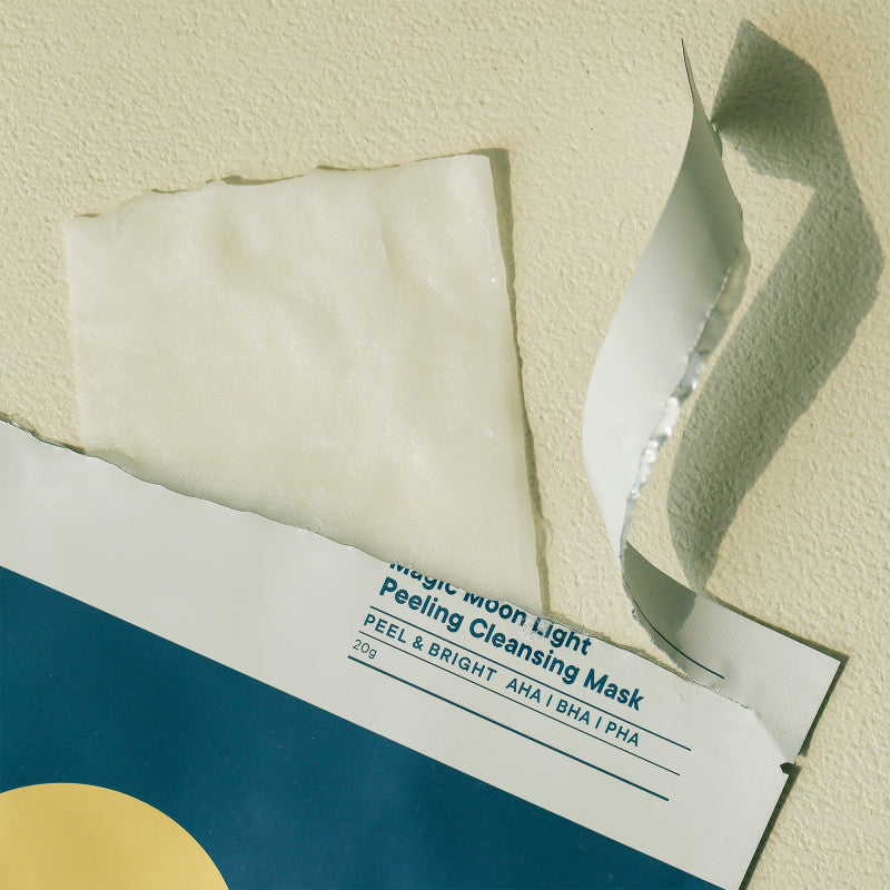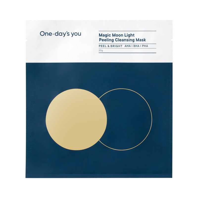 ONE-DAY'S YOU Magic Moon Light Peeling Cleansing Mask to innowacyjna maseczka w płachcie, która złuszcza martwy naskórek i głęboko oczyszcza skórę w zaledwie 60 sekund. Łączy działanie pianki oczyszczającej i peelingu, oferując kompleksową pielęgnację w jednym kroku. Dzięki zawartości AHA, BHA i PHA skutecznie usuwa martwe komórki skóry, odblokowuje pory i redukuje nadmiar sebum, pozostawiając cerę gładką i odświeżoną. Formuła wzbogacona o naturalne ekstrakty roślinne dodatkowo koi skórę i wspomaga jej regenerację.